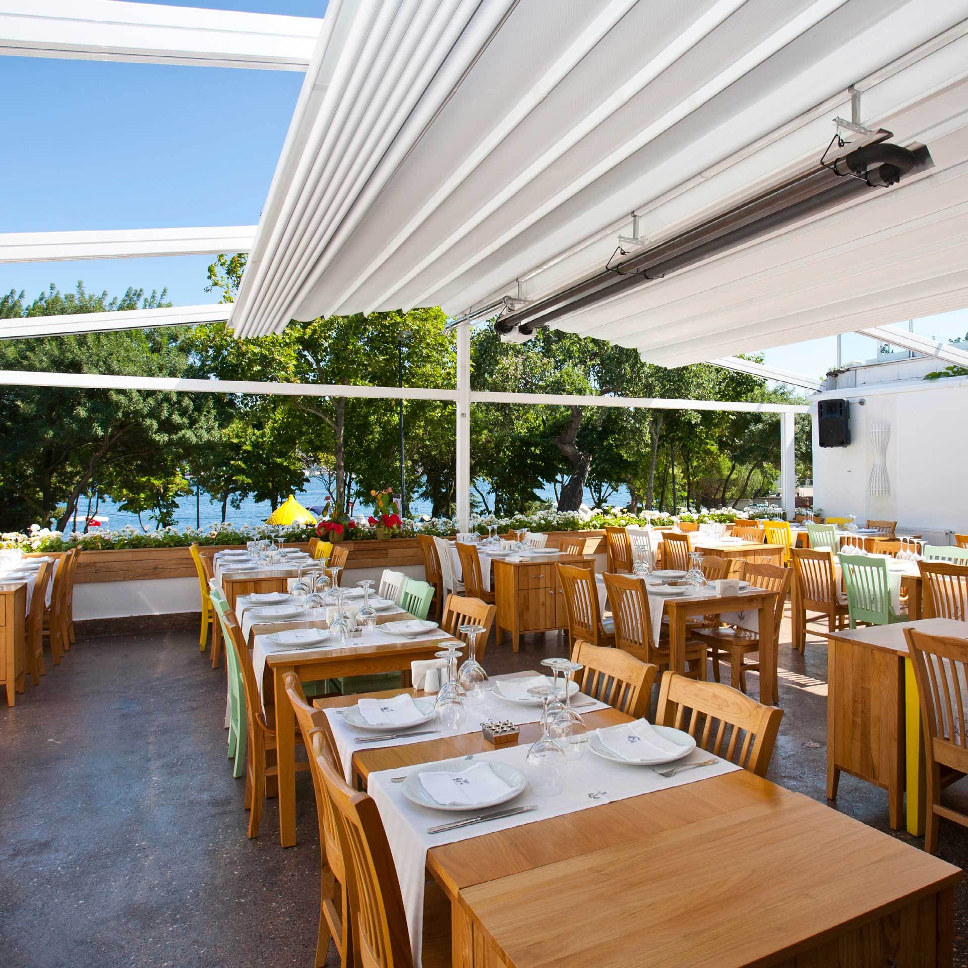 Unsere Pergolen basieren auf einem Schienensystem. Das einziehbare Faltdach schützt Sie vor Sonne, Wind und Regen. Wählen Sie aus unterschiedlichen Materialien und Optiken!